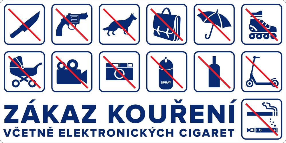 - kufry, velké tašky nebo batohy větší než 30 x 30 cm